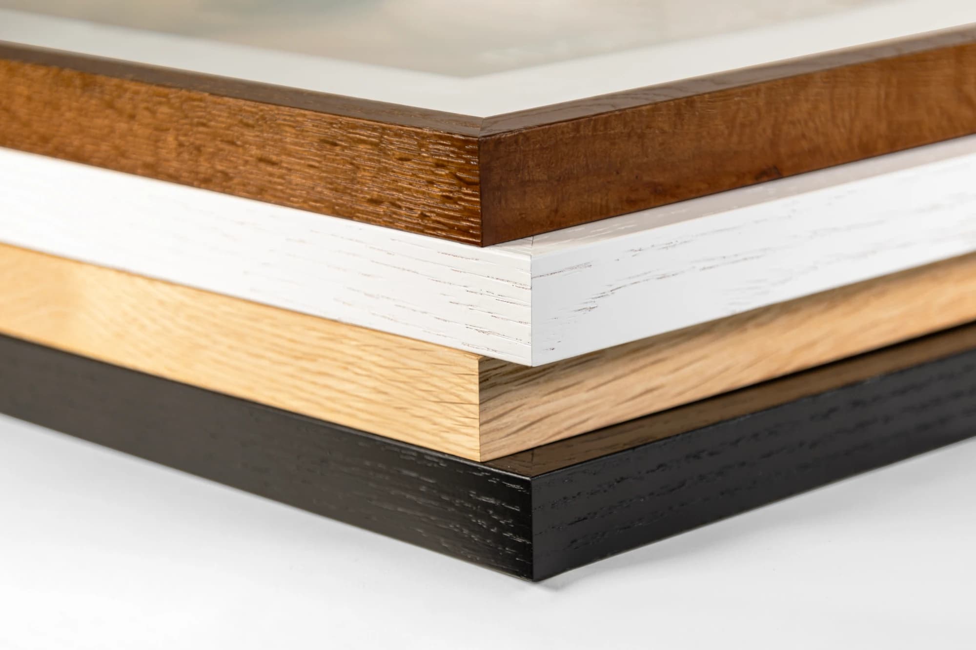 Made from solid oak or brushed metal, our frames come in eight finishes and include your choice of plexiglass or real glass. Each frame is carefully packaged and ready to hang out of the box.