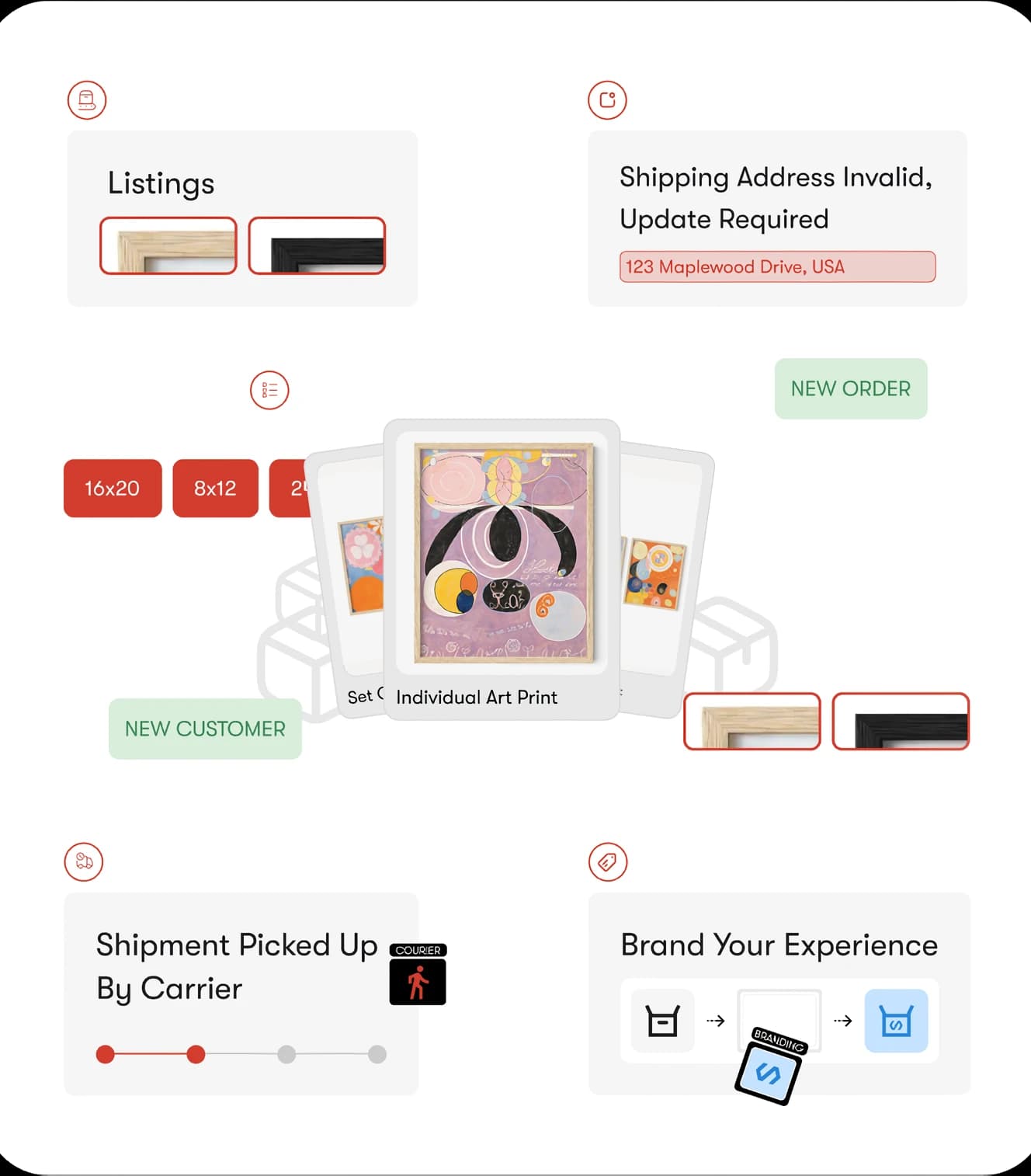 Seamlessly integrate fine art printing, framing, and fulfillment into your platform. Automate workflows, scale operations, and deliver exceptional quality to your customers.